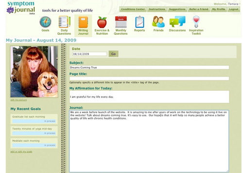 Your Writing Journal automatically creates a new page for any day you wish to write. Your Journal is always in edit mode and you can search by date for entries that you have made previously. You will find in your Profile section the ability to upload photos and keep a photo history of your progress. Your current photo will greet you on your Writing Journal page along with your current goals, to be your inspiration and encouragement to stay focused on the life you want to create.